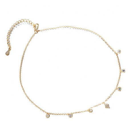 Peishang Fashion Chain Link Gold Jewelry Round Rhombus Bezel Setting 925 Sterling Silver Necklace for Women Custom
