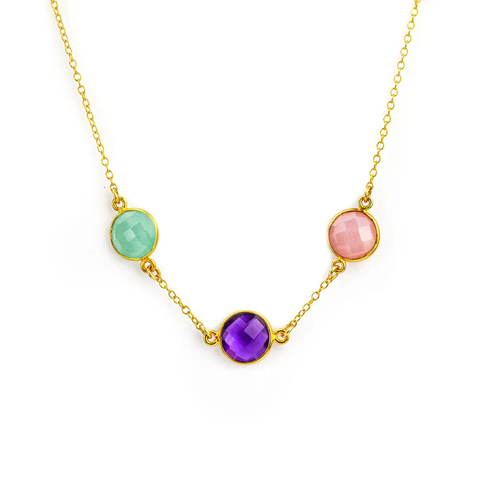 custom jewelry Custom Custom Birthstone Necklace Gemstone Charm Round Gemstone Stations Necklace for Women Adjustable Sterling Silver Chain